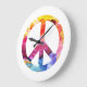 Peace Sign Hippie Girl 70s Große Wanduhr