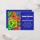 Baby Dusche Einladung mit einem 60er-Jahre-Flair. Coole Friedenszeichen in leuchtenden und lebendigen Neonfarben mit allen Farben des Regenbogens.