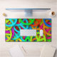 Schreibtischmatte mit einem sechziger-Jahre-Flair. Coole Friedensstipps in kräftigen und lebendigen Farben mit allen Farben des Regenbogens.
