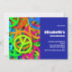 Eine Einladung zum Geburtstag mit einer sechziger Jahre. Coole Friedenszeichen in leuchtenden und lebendigen Neonfarben mit allen Farben des Regenbogens.