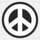 Klassischer Rundaufkleber mit weißem Friedenszeichen / CND-Symbol auf schwarzem Hintergrund.