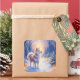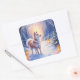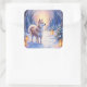Peaceful Akita on Snow Lantern Path Christmas Dog Quadratischer Aufkleber