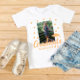 Feiern Sie Ihre akademische Leistung stilvoll mit unserem Peach Abschluss Foto T - Shirt, einem personalisierten Sake, der das Wesen Ihres besonderen Tages einfängt. Die Vorderseite zeigt ein individualisierbares Abschluss-Foto, mit dem Sie stolz Ihre Leistung zeigen und Ihren Erfolg mit der Welt teilen können. Egal ob Sie mit Familie und Freunden feiern oder in den sozialen Medien an den Anlass erinnern, unser Peach Abschluss Foto T - Shirt ist der perfekte Weg, um Ihre harte Arbeit und Hingabe zu ehren. Es ist ein einzigartiger und personalisierter Weg, diesen wichtigen Meilenstein in Ihrer akademischen Reise Diese Graduation Party T - Shirt, basiert auf pfirsichfarbenen 'GRADUATE' Wort und Graduierungspapier bereichert mit Skriptdetails . Um die Vorlage mit Ihren Daten anzupassen, klicken Sie einfach auf den Button 'PERSONALZE' inklusive dem Foto.