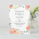 Eine schöne feminine Hochzeitseinladung, gerahmt in einer Weisheit, weich blühenden Rahmen von Pastellpfirsich, Rosa- und Cremetönen, Rose und gemischten Blume mit hintersten Blätter und Grünpflanzen. In diesem Design wird ein elegantes Textlayout verwendet, das Sie einfach mit Ihren Hochzeitsdetails personalisieren können. Das Farbschema funktioniert wunderbar für Hochzeiten im Frühling und Sommer. In diesem Design und Farbschema ist eine passende Suite von Hochzeitsartikeln und Papierprodukten erhältlich.