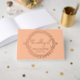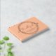 Eine schöne Rose Goldfolie Hochzeitsguestbook in dunkelpfirsichfiz mit einem Blumenelement Text ist "die Hochzeit von", dann Braut und Bräutigam Namen und Datum der Hochzeit. Auf der Seitenwand steht "Unser Hochzeitstag" in Rose Goldfolie