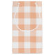Erstellen Sie Ihr eigenes Gingham-Muster, indem Sie die helle peachy orange Hintergrundfarbe ändern. Sie können auch die Bildgröße und Ausrichtung ändern. Fügen Sie einen modernen Text hinzu, um eine personalisierte Geschenktasche zu erstellen.