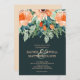 Elegante Aquarellfarben von Blume in Pfirsichfarben bis Orangen getrimmt mit aquamarinen bis jade grünen Blättern auf einem dunklen aquamarinen Hintergrund mit Ihren Trauungen Details in schicken blasspfirsichfarbenen Schriften. Eine moderne und dennoch einfache Wahl für jede Jahreszeit Hochzeitseinladung. Ändern Sie den Hintergrund zu einer beliebigen Farbe, um Ihre Hochzeit Thema. PASSENDE Artikel in unserem Geschäft.