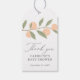 Danke an Freunde und Familie, dass Sie Ihre Babydusche mit pfirsichbezogenen Gefälligkeitsmarken besucht haben.