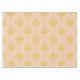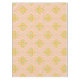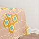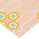 Hexagonal floral pattern with blue-green centers and orange outlines on a peach background. White lines connect the shapes, creating a geometric grid.