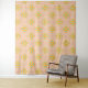 Hexagonal floral pattern with blue-green centers and orange outlines on a peach background. White lines connect the shapes, creating a geometric grid.