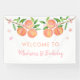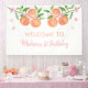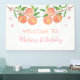 Dieses bezaubernde Banner mit handgemalten Aquarellpfirsichen, Pfirsichblüten und lebhaften Blätter.