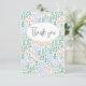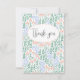 Hübscher Aquarellpfirsich, blauer und grüner Blumenhintergrund mit "Danke" in moderner Typografie. Ideal für jeden Anlass.
