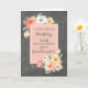 Hübsche und nachdenkliche Begrüßungskarte für den Geburtstag Ihrer Urenkelin mit pfirsichrosa und weiße Frühlingsblumen, rustikalem Chalkboard-Muster und handgeschriebenem Stil.