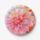 Eine harmonische Mischung aus Farbe und Eleganz mit einem großen, lebendigen Dahlia-Blume-Set vor einem weichen pfirsichrosa Hintergrund.