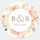 Eleganter mit Monogramm Hochzeitsaufkleber oder Gaumen-Aufkleber mit herrlichen Aquarelltönen in einer schönen Mischung aus Pfirsich, Orange, Rosa, Rosa, Creme und Champagner. Mitte in Weiß mit Initialen und zweite Textzeile in Terrakotta Rostton. Zwei Größen und mehrere Formoptionen zur Auswahl. Die untere Textzeile kann für das Veranstaltungsdatum, das Löschen oder für den Fall von Vorzugsereignissen verwendet werden, um eine kurze Danksagung (z.B. "Danke, dass du gekommen bist." Teil unserer Kollektion "Peach floral Delight and Terracotta" mit einer Vielzahl von Produkten zur Koordination. Die gesamte Sammlung finden Sie unter: https://www.zazzle.com/collections/peach_floral_delight_and_terracotta-119586567178093068
