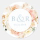 Eleganter mit Monogramm Hochzeitsaufkleber oder Gaumen-Aufkleber mit herrlichen Aquarelltönen in einer schönen Mischung aus Pfirsich, Orange, Rosa, Rosa, Creme und Champagner. Mitte in Weiß mit Initialen und zweite Textzeile in blau. Zwei Größen und mehrere Formoptionen zur Auswahl. Die untere Textzeile kann für das Veranstaltungsdatum, das Löschen oder für den Fall von Vorzugsereignissen verwendet werden, um eine kurze Danksagung (z.B. "Danke, dass du gekommen bist." Teil unserer Kollektion "Peach Floral Delight and Blue" mit einer Vielzahl von Produkten zur Koordination. Die gesamte Sammlung finden Sie unter: https://www.zazzle.com/collections/peach_floral_delight_with_blue-119436951689312574