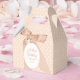 Peach Bow Baby Shower Thema. Sommerpfirsichhue für eine stilvolle, lustige und niedliche Babydusche. Peach-y Buff Hintergrund mit Polka-Punkten, großer Gingham-Bogen im rustikalen Stil, mit augenscheinlicher Typografie. Grosses ovales Abzeichen mit Namen, Veranstaltung und Datum. Erstellen Sie eine peachy buff Farbe, buggethemed Dusche mit Dainty Details. Dovetails perfekt mit großen Bögen, Ballons, kreativen Getränken und Lebensmitteln. Bow und "danke" auf der Rückseite. Der gesamte Text ist innerhalb des Zazzle Designtools anpassbar.