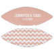Braut und Bräutigam, ganz nach Maß, in blasser Pfirsichform, auf der einen Hälfte der Oberseite und auf der anderen Hälfte der Spitze ein Zickzack, weißes und pfirsichfarbenes Muster. Personalisieren Sie den fett weißen Text der Braut und Bräutigam Namen und Hochzeitstag. Eine tolle Geschenkidee für das Fußballfans-Paar.