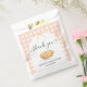 This charming baby shower favor bag features a sweet apple pie design framed by a soft peach gingham border, accented with delicate white flowers and a coquette-style ribbon bow. Elegant script typography adds a heartfelt touch, making it perfect for presenting treats, baked goods, or small gifts for guests. Designed to coordinate seamlessly with a Cutie Pie–themed baby shower collection, this favor bag adds a polished and cohesive finishing detail to your celebration. The soft pastel color palette creates a warm, timeless look suitable for any season, while the customizable text allows you to personalize it with the guest of honor’s name and event date.