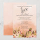 Ein Fest der Liebe! Eine blumengeschmückte Hochzeitseinladung mit einem pfirsichfarbenen Ober-Effekt und einem hübschen Aquarellblumengarten am unteren Rand.