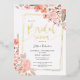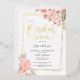 Peach floral grün Gold Skript-Brautparty Folieneinladung