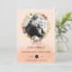 Ein reizendes Save the Date für den Frühling oder Sommer mit einer Touch botanischen Charmes. Ein pfirsichfarbener Ober-Effekt mit einem farbigen Kranz aus Aquarellfarben und Blattwerk. Auf der Rückseite dieser Karte befindet sich ein voller Garten mit Blume am unteren Rand. Ersetzen Sie das Platzhalter-Foto durch Ihr eigenes Verlobung-Foto, Ihre Namen und Ihr Hochzeitsdatum.