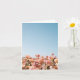 Field of peach flowers. Blank greeting card.