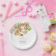 Rustikale pfirsichfarbene Papiertafel zum Brautparty mit Aquarellbildern von Pfirsichen auf einem Baumzweig.