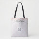 Unsere Tasche aus Monogramm wird mit einem pfirsichgeometrischen und zackigen Druck sowie einem weißen Rahmen für Ihren ersten Auftritt verziert. Passen Sie Ihren Namen und Ihre Initialisierung an. Sehen Sie sich unsere komplette Produktpalette in unserem Zazzle-Shop an.
