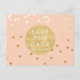 Peach & Gold Shiny Confetti Dots Save the Date Ankündigungspostkarte