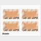Peach Jingle Bells Die rechteckigen Aufkleber des Strips sind mit altmodischen Jingle Bells und einer Chrom-Schneeflocke auf einem Hintergrund aus Pfirsich, Korallen und chromen diagonalen Streifen mit einem Korallenbanner mit Text, der Weltfrieden ausliest. Wir haben passende Umschläge, Grußkarten, Labels und Briefmarke für den Versand!
