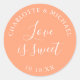 Peach Liebe ist süße Gastgeschenk Hochzeit Runder Aufkleber