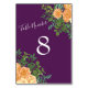Peach Lila Hochzeitflorale Rose Tischnummer
