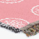 Dieses weiße Mandala sitzt auf einem pfirsichrosa Hintergrund. Die Farben sind blumig und hell. Teil der Sammlung Bleujenn Mandala.