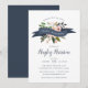 Die süße Blumendusche mit ihren pachy-blütenrosa Blume und grünen Blätter umrahmt ein marineblaues Banner mit dem Titel "Babydusche". Persönlich gestalten Sie Ihre Babydusche in einem eleganten Mix aus Block-, Serif- und Kalligraphiegeflecht.
