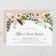 Chic floral 16 . Geburtstag Geburtstagsparty Einladungen mit einer kaskadierenden oberen Grenze von rot-rosa und pfirsichfarbenen Blume mit üppiger botanischer Vegetation. Personalisieren Sie Ihre süßen 16 Party Details in schwarz-schwarz-schwarz-schwarz Serif und kalligraphisch Schrift.
