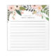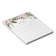 Das elegante Notizblock mit Blumen hat eine obere Grenze zwischen pfirsichfarbenen und rot-rosa Blume, Knospen und grünen Botanikalen. Personalisieren Sie sich mit zwei Textzeilen in moderner Schrift; gezeigt mit dem französischen Gruß "bonjour" und Ihrem Namen. Liniert.