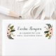 Chic florale Rücksendeadressen-Aufkleber umrahmen Ihren Namen und Ihre Adresse mit zarten pfirsich- und rot-rosa Blume, Knospen und üppig grünen botanischen Elementen.