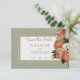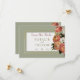 Dieses wunderschöne Blumendesign besticht durch ein Bouquet mit pfirsichfarbenen, rosa und weißen Blume auf einem staubigen, grün mit goldfarbenem Rahmen. Es ist Teil der Peach Mimosa Blooms Floral Wedding Suite Sammlung von Karten erstellt von Simply Farmhouse Press.