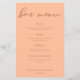 Peach ist die neue Trendfarbe für Sommerhochzeiten. Unser Bar mit süßen Pfirsichen bietet Ihnen eine elegante, hellbraune Schrift, in der Sie Ihre Getränke für eine angesagte, minimalistische Veranstaltung am Nachmittag detailliert darlegen können. Fügen Sie Ihre Weinauswahl, Bier, Spirituosen und andere Spezialgetränke auf dieser Liste.