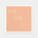 Minimalistisches Hochzeitsessen Probe Begrüßung Serviette mit Typografie-Text, der "noch einen Tag" sagt. Der Hintergrund ist pfirsichfarben.