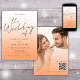 Für besondere Designbedürfnisse können Sie sich direkt per E-Mail an choosehappystudio@yahoo.com in Touch mit dem Designer setzen. Diese moderne, minimalistische Hochzeitseinladung besticht durch eine elegante Schriftrolle. Es spielt mit der Einfachheit eines Schwarz-Weiß-Typografie-Designs und fügt nur einen Hauch von Pfirsichfarbe hinzu. Im Hintergrund der Einladung können Sie Ihre Hochzeitswebsite-Informationen sowie einen QR-Code für Ihre Gäste zum Scannen hinzufügen. Es ist die perfekte Wahl für Paare, die saubere und moderne Eleganz schätzen.