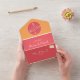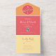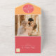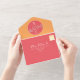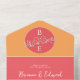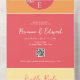 Moderne, moderne pfirsichorange und gelbe Hochzeitseinladung mit QR-Code, Monogramm mit handgezeichneten Liebe-Paarvögeln, trendige handgeschriebene Schrift und ein individuelles Bild des Hintergrundes. Fügen Sie Ihr Foto, Ihre Hochzeitsdetails und uAwg.