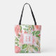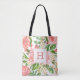 Schöne handgefertigte Aquarellfarbe Rosa und pfirsichfarbene Rose Blume Arrangements zu Tasche mit Ihrem maßgeschneiderten Monogramm.