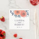 Diese personalisierten, modernen, blumengeschmückten Servietten in einer schicken Farbpalette aus Marineinfanterie und Korallen wurden speziell für den Empfang von Cocktails und Hochzeitsfeiern entwickelt. Das Design umfasst eine Gruppe von Mohnarten in Aquarellen und Korallen, umgeben von Blätter und Knospen in staubblauer Marineblau und verblasstem Jäger-Grün. Fügen Sie Ihre Namen und das Hochzeitstag in modernen Mitternachtsblauen Schriftzeichen mit dekorativen Swashes hinzu.