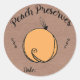 Mit diesem handgezogenen Aufkleber machen Sie Ihren Pfirsichkorb schön. Es gibt einen Ort, um das Datum zu schreiben.