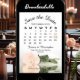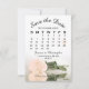 Diese wunderschönen "Save the Date"-Karten verfügen über ein wunderschönes Foto eines Single, der lang gestemmt blassorange oder pfirsichfarbene Rose ist und in Wasser mit Wellen und Wellen reflektiert. Die Karte enthält einen Kalender mit Ihrem Hochzeitstermin in einem roten Herz. Schönes romantisches Design.