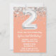 Peach Silver 2. Geburtstag Party Einladung