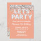 Peach Silver Glitzer Geburtstagsparty Einladung für jedes Alter mit modernen Drehbüchern und lustigen Folie Ballons.