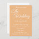 Einfaches Design, Einladung zur Hochzeit, mit einem trendigen, pfirsichfarbenen Hintergrund, den zukünftigen Braut- und Bräutigamen und Veranstaltungsdatum, Uhrzeit, Ort und Registrierung in weißem, stilisiertem Schrift gedruckt. Personalisieren Sie Ihre Hochzeitseinladung, indem Sie Informationen durch Ihre eigenen ersetzen. Wählen Sie Ihre Einladung Papier Stil und Quantität. Entworfen, um mit unserer Peach Simple Style Wedding Kollektion zu koordinieren.